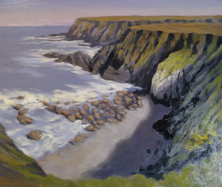 Her landscape artworks predominantly feature natural scenes, such as waterfalls and mountains, which evoke memories of her upbringing in Montana. Having lived in SW Washington for the past 35 years, she cherishes the forests, rivers, and ocean, appreciating the richness of the local environment. The challenge of encapsulating the essence of a specific location captivates her, allowing her to almost sense the breeze and the scent of the sea through her art.